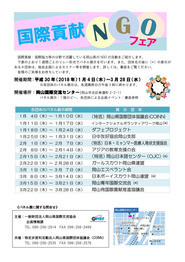 特定非営利活動法人 岡山県国際団体協議会 〒700-0026 岡山市北区奉還町2-2-1 国際交流センター6F