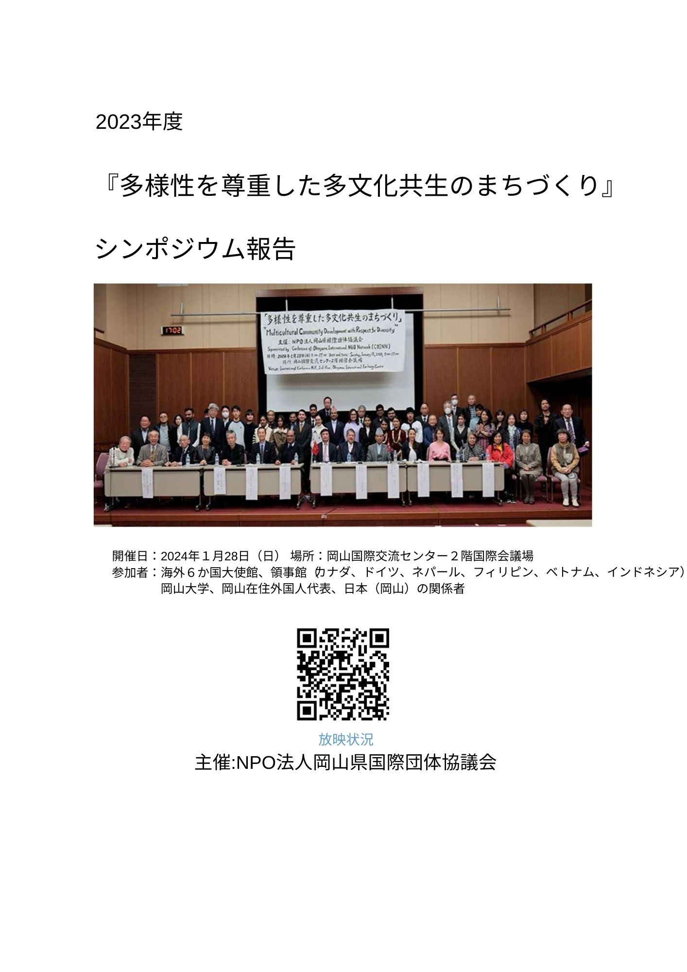 概略版 多様性を尊重した多文化共生のまちづくりシンポジウム報告(日本文報告書) 20240228公開日:2026年02月03日 | 投稿者: coinn事務局 | 参照数: 18 PDFダウンロードはこちら